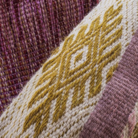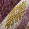 In rural Peru, backstrap weaving is a practiced, traditional process that has been passed down for generations. Textiles woven using this technique are only as wide as the weaver’s hips, and the weaver uses the tension of her body to control the tension in the loom and textile. The backstrap loom is portable, and requires only two stakes to set up. Weavers often roll the stakes up with the loom and carry it around with them, weaving whenever it is convenient.